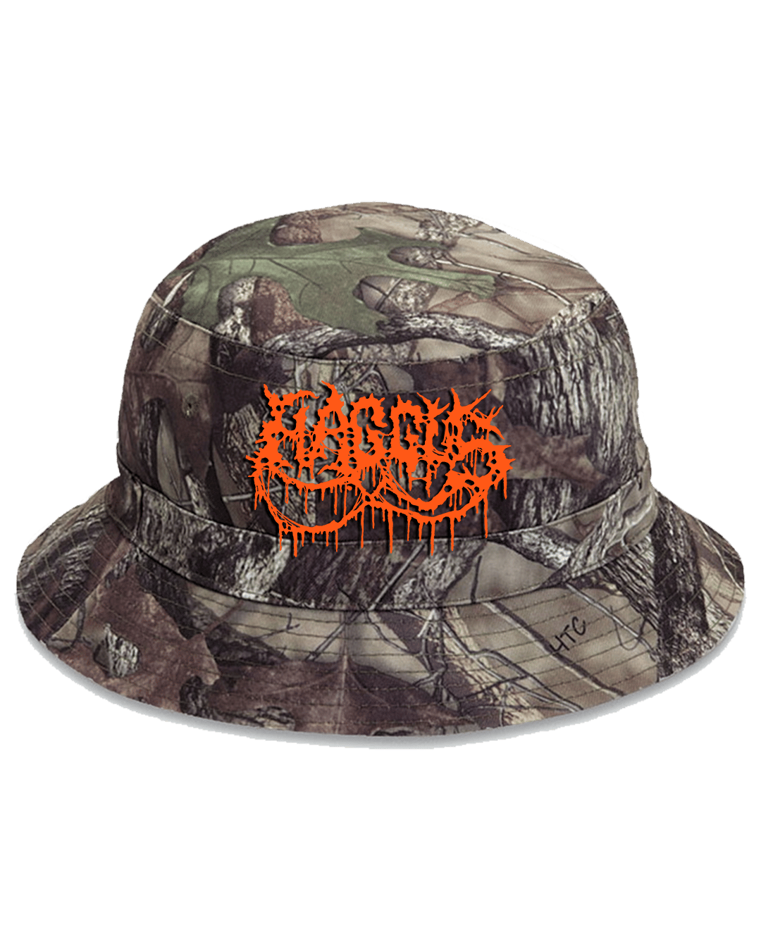 Direct Caps brand Realtree bucket hat with Orange thread embroidered logo. One size fits most