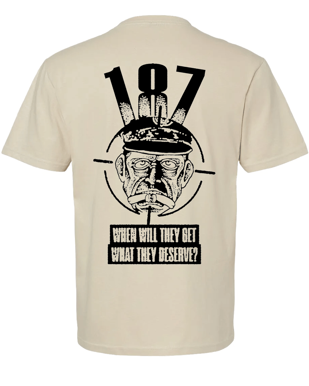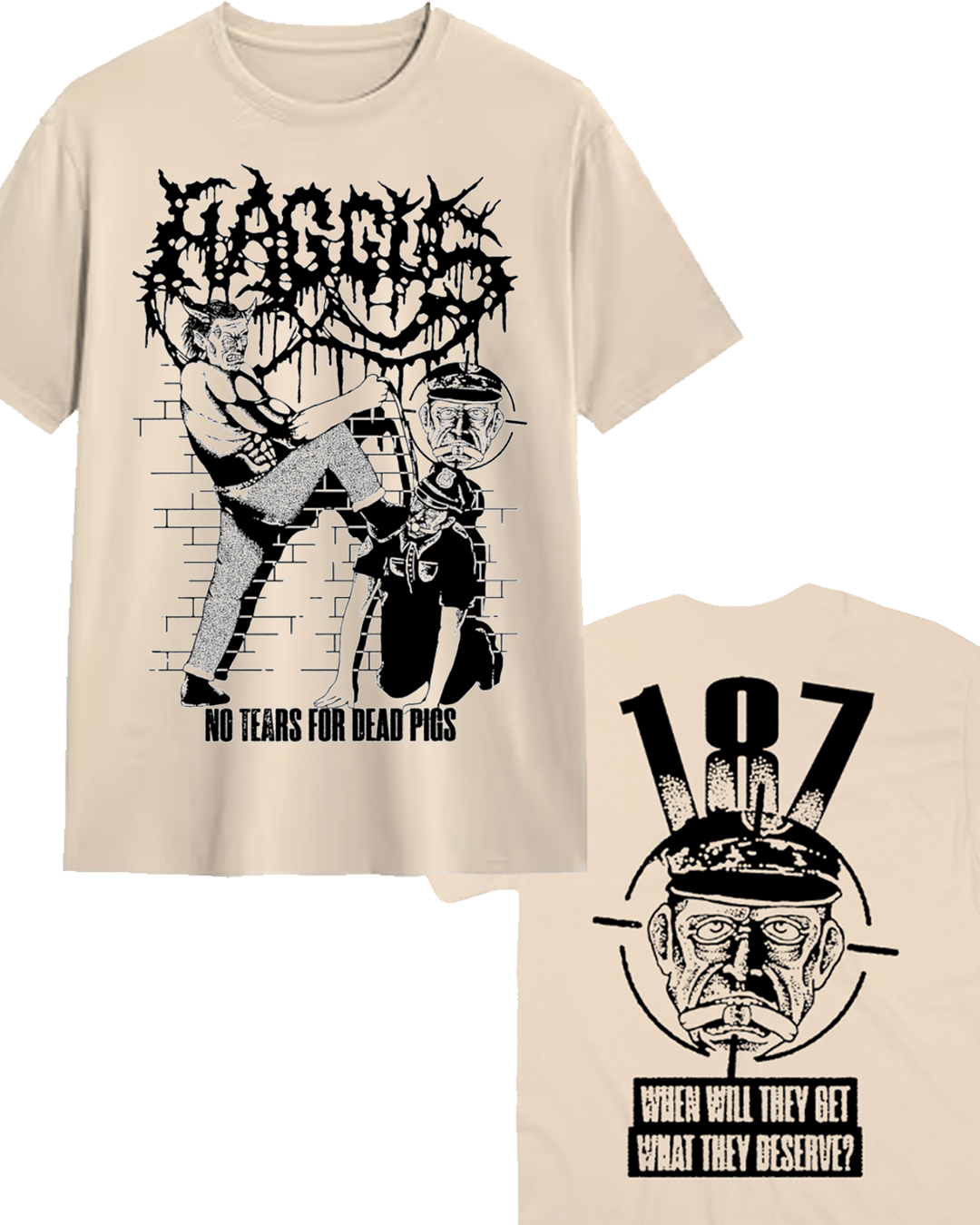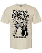 No Tears For Dead Pigs T-shirt, Off-white "pre-crusted" shirt with white and red ink, double sided print